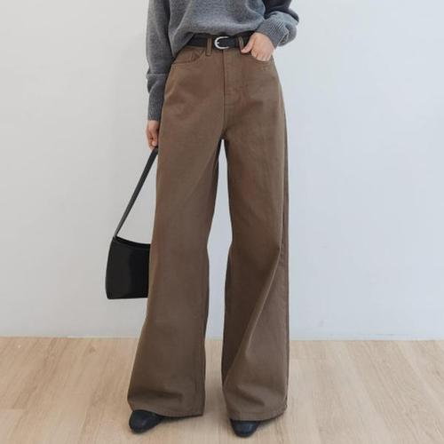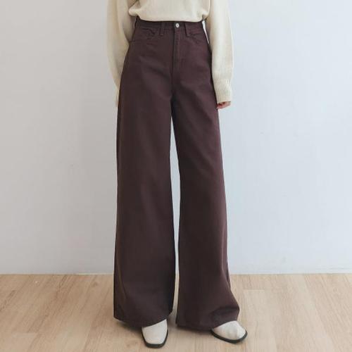 [헤이데이즈]1263 (베이지) 기모 하이웨스트 맥시 롱 와이드 부츠컷 플레어 A라인 데님 팬츠 /브라운