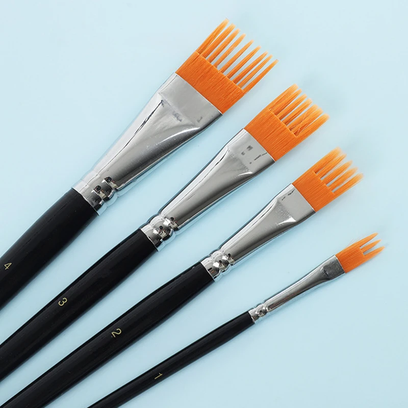 수채화 오일 디지털 페인팅을 위한 4개입 톱니 모양 페인트 브러쉬 세트 - 예술가 및 학생을 위한 풍경 잎 예술 브러쉬