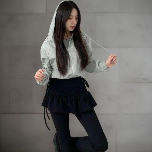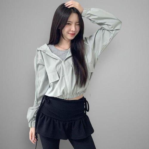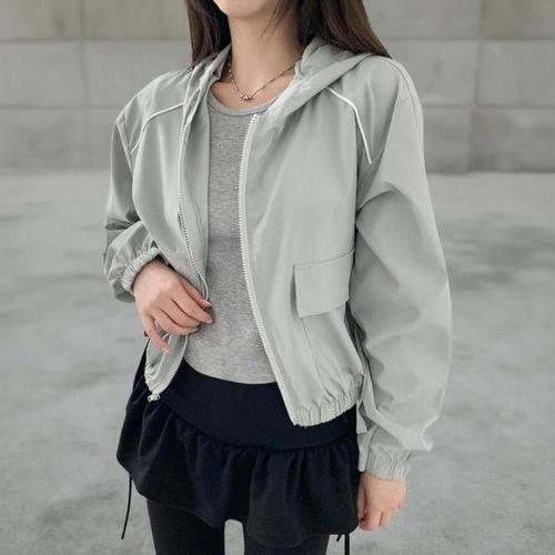 [옷자락]여성 캐주얼 사이드포켓 크롭 후드 바람막이 재킷