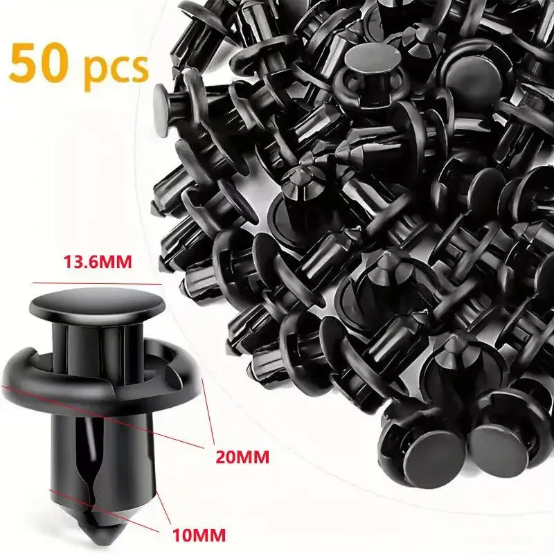 50개 검정색 ABS 플라스틱 확장 리벳 너트 및 버클 클립 - 자동차 액세서리 및 장식용 자동차 부품 수리 패스너