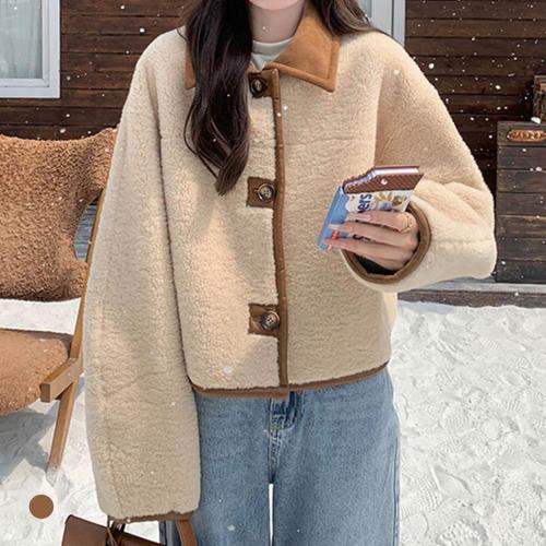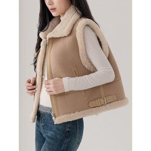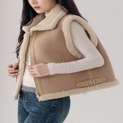 TEMU 여성용 모피 V넥 자켓 - 따뜻하고 세련된 베이지 아우터웨어, 가을/겨울에 완벽한 부드러운 안감, 편안하고 매력적인 디자인, 가을 자켓 | V넥 자켓 | 부드러운 텍스처 자켓