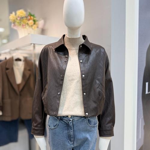 [더틸버리]페이크 레더 크롭 재킷MTRAM0JK12W_DG