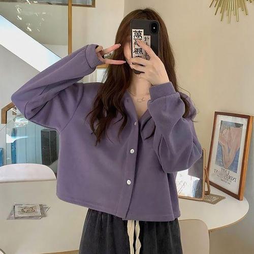 [에이치플러스몰]여성 루즈핏 후드 가디건 크롭 브이넥 봄 가을 2030