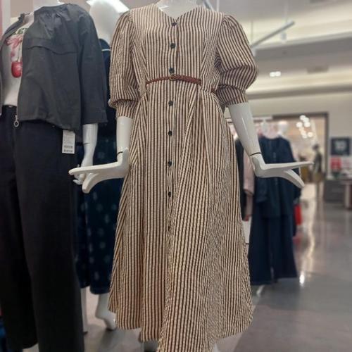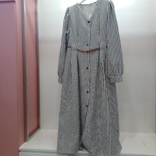 Latium HC06 브이넥 스트라이프 주머니 A라인 세미정장 벨트롱원피스 T253