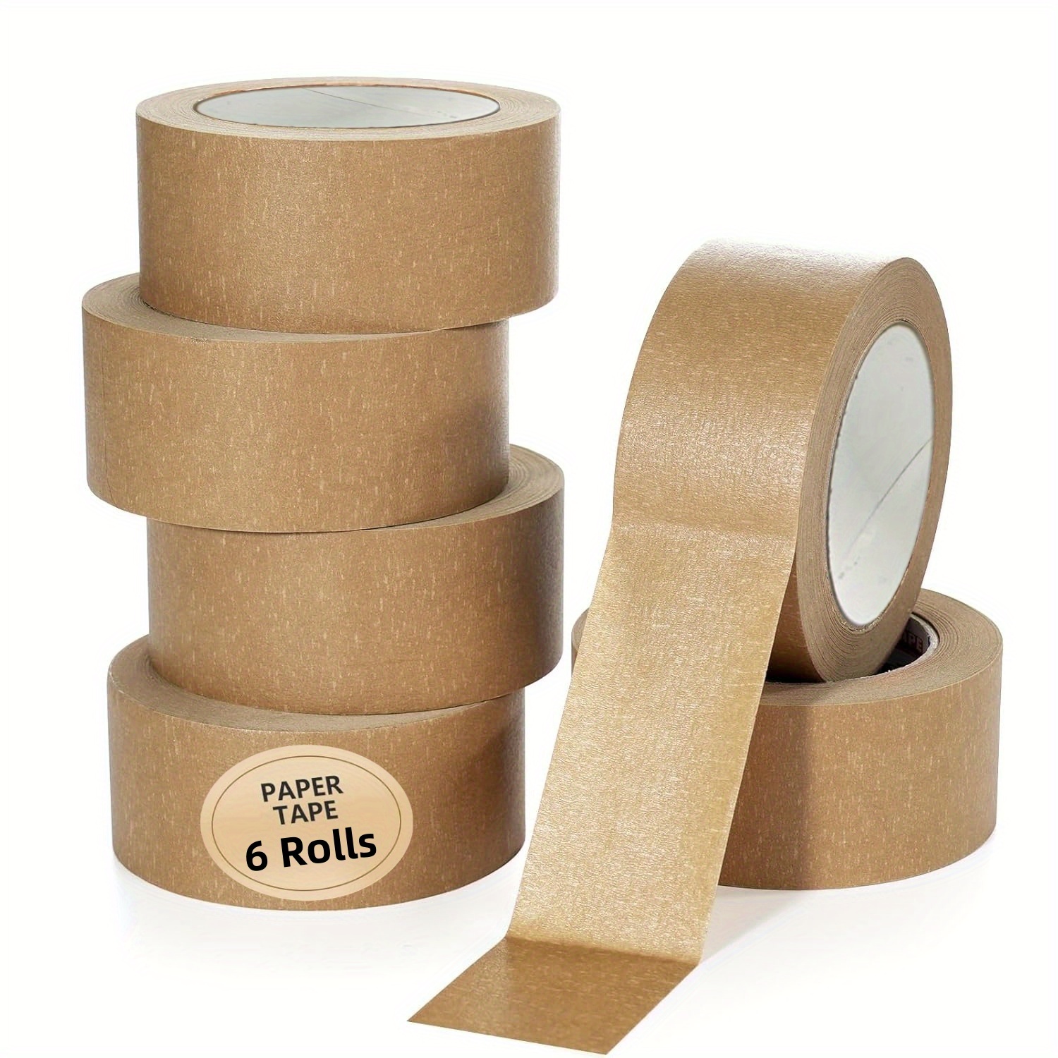 TEMU 2인치 고강도 크래프트 종이 포장 테이프 - 생분해성, 방수 코팅 브라운 강력 접착 마스킹 및 고품질 포장용, 천연 느낌의 마스킹 테이프