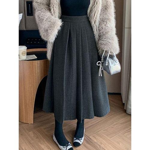 TEMU 여성용 아카데믹 스타일 그레이 트위드 정장 스커트, 신상 가을/겨울 하이웨이스트 슬리밍 드레이프 미디 A라인 플리츠 졸업 스커트, 다용도 데일리 웨어, 벨트 없음 포켓 없음|여성의류