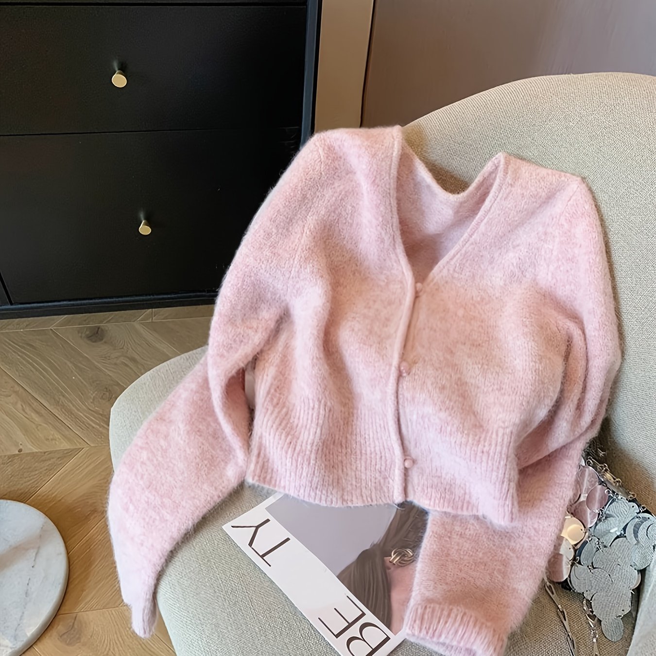 TEMU 여성용 프렌치 엘레강스 레이디 V넥 소프트 숏 스위트 스웨터, 신상 가을/겨울 디자인, 게으른 스타일, 나이 감추는 패셔너블한 가디건 (년년)