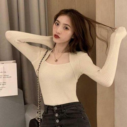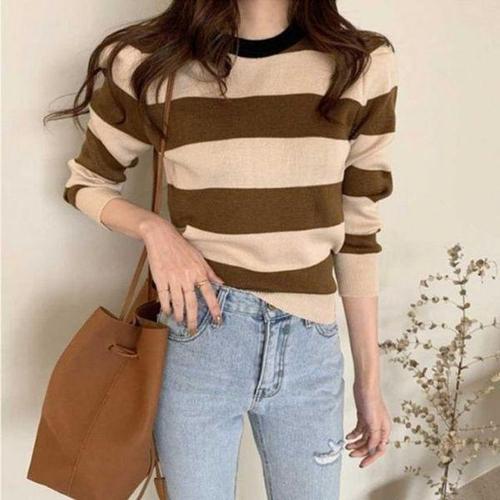 [에이치플러스몰]대학생 인기 여자 캠퍼스 룩 감성 슬림 핏 골지 니트