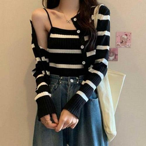 [에이치플러스몰]대학생 인기 여자 간절기 캠퍼스 감성 룩 가디건 나시