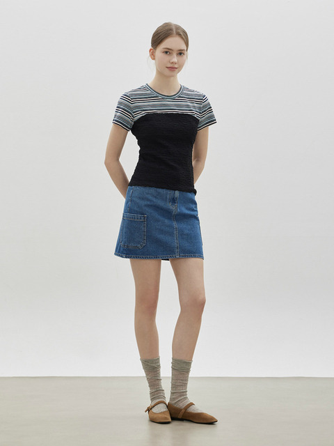[씨씨콜렉트] 언밸런스 헴 스트라이프 스커트 NY_C262MSD033