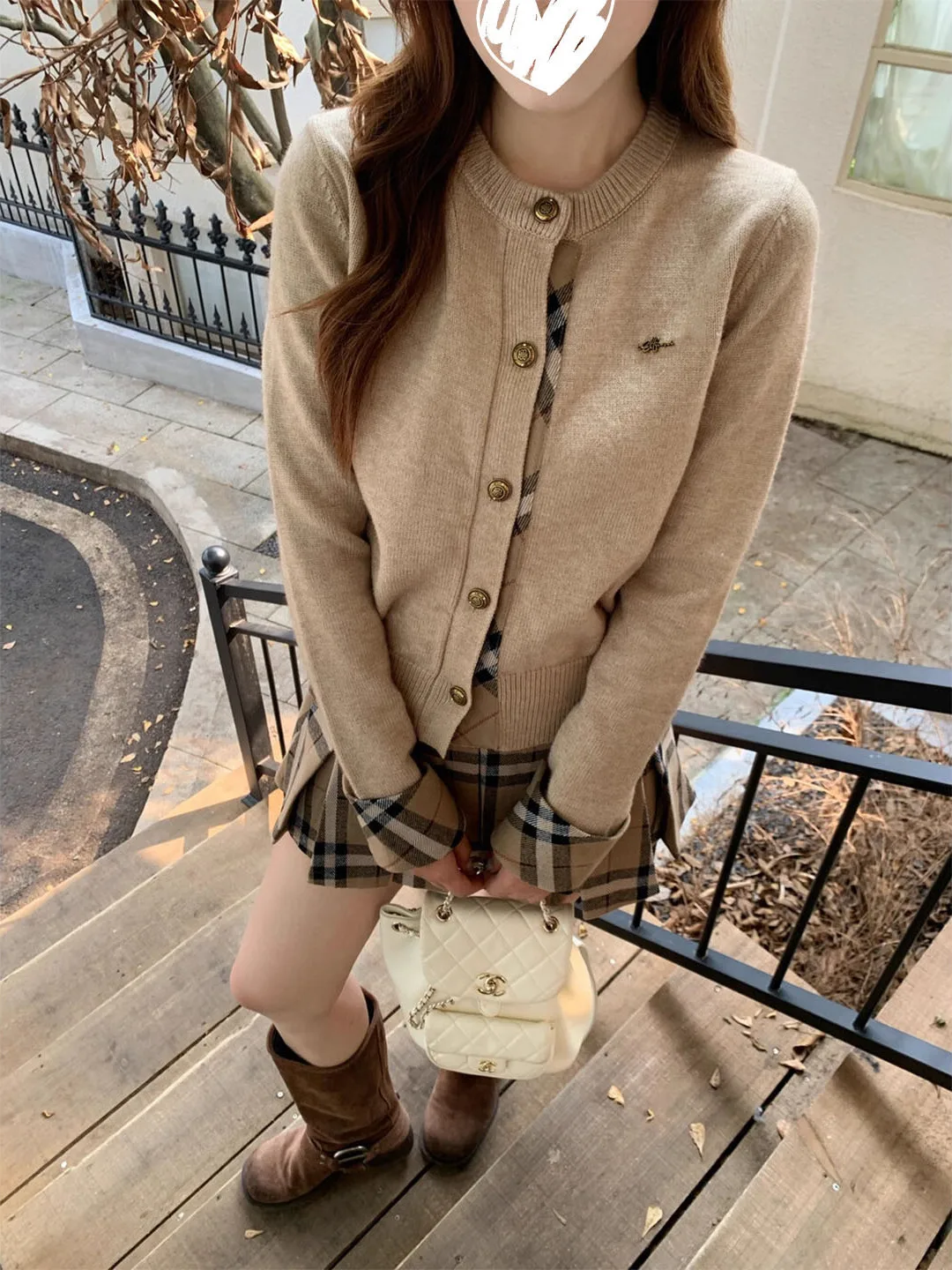 가을, 겨울 느슨한 라운드 넥 긴 소매 스웨터 자켓 반바지 투피스 양복 한국 여성 정장