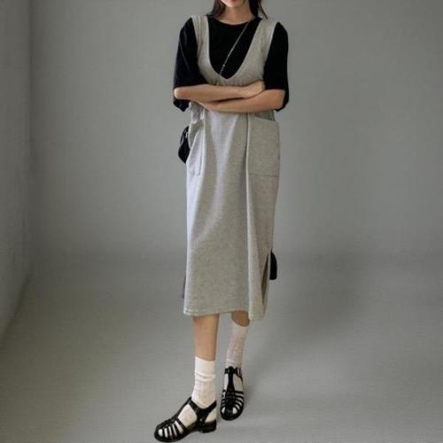 [신상오픈런]|CHO559A|여성용 루즈핏 포켓 레이온 면 뷔스티에 긴 원피스_21556851_597559