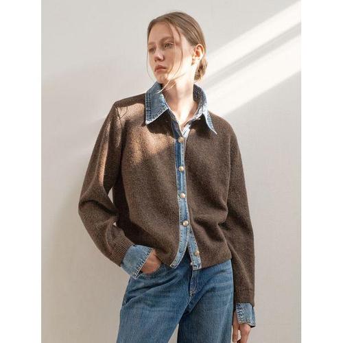 [나인식스뉴욕]카라넥 데님 배색 버튼업 긴팔 울 가디건 (NP4CK019L0)