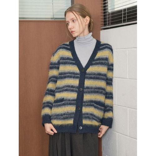 [나인식스뉴욕]브이넥 단가라 배색 포켓 오버핏 울 가디건 (NP4CK021L0)