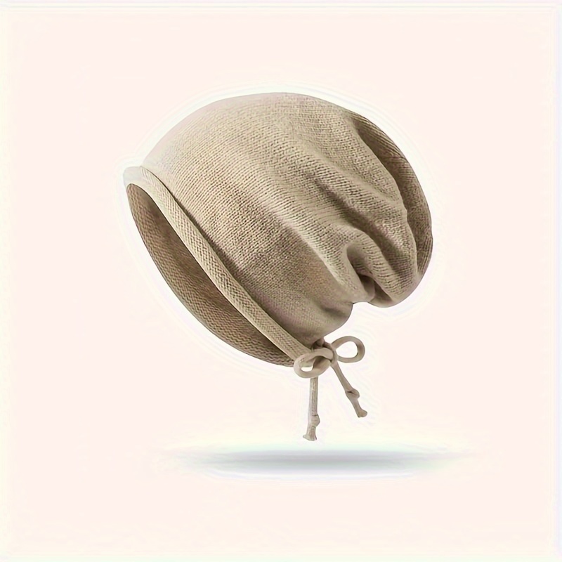 TEMU 여성용 솔리드 드로스트링 통기성 헐렁한 비니 모자, 일상 착용을 위한 방풍 경량 다용도 니트 비니 모자