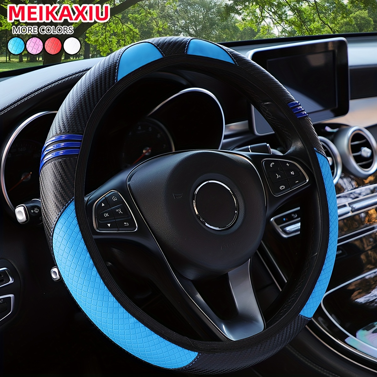 TEMU PU 가죽 카본 파이버 귀여운 카툰 패션 스티어링 휠 커버 (내부 링 없음), 37-38cm 차량용 액세서리