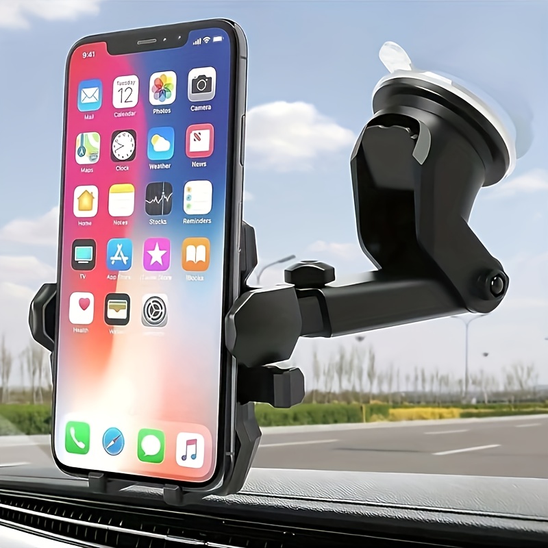 TEMU 조절 가능한 흡착식 자동차 휴대폰 홀더 - 접이식 암 & 클램프, 강력한 접착 베이스, 고품질 디자인의 핸즈프리 GPS 내비게이션 및 안전 운전용, 차량 액세서리, 슬림 가젯 마운트, 유연한 조인트 구조, 컴팩트 마운트, 내구성 있는 로드 트립 필수품