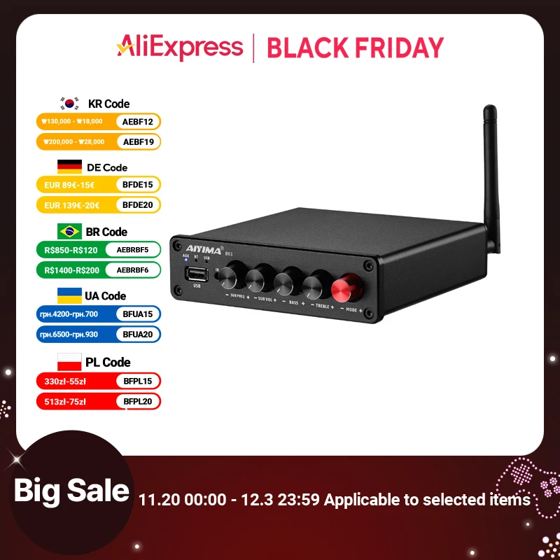 AIYIMA 오디오 B01 Bluetooth TPA3116D2 서브우퍼 증폭기 100W HiFi 스테레오 디지털 2.1 클래스 D 앰프 베이스 트레블 홈 시어터용
