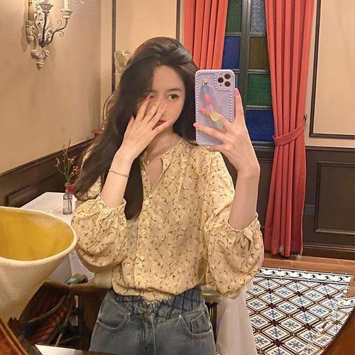 [BZFG94K1_51IB]플라워 봄 블라우스 오피스 룩 티 옐로우
