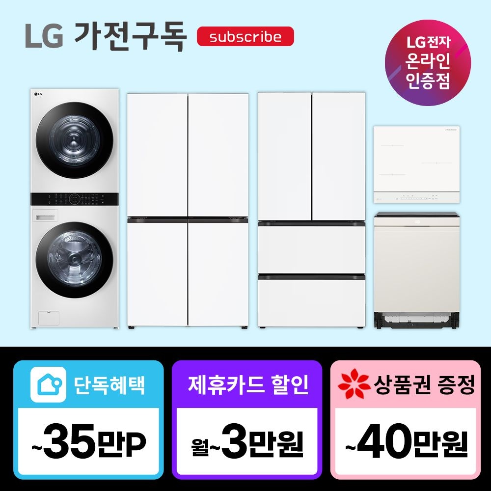 [LG 공식 구독/렌탈][상품권 최대 혜택] LG 가전 정수기 공기청정기 세탁기 건조기 스타일러 식기세척기 전기레인지 워시타워 에어컨 모음전 / 상담,초기비용0원