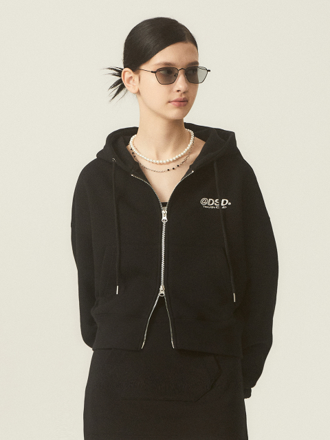 [오드스튜디오] ODSD 로고 스웨트 크롭 후드집업 - BLACK