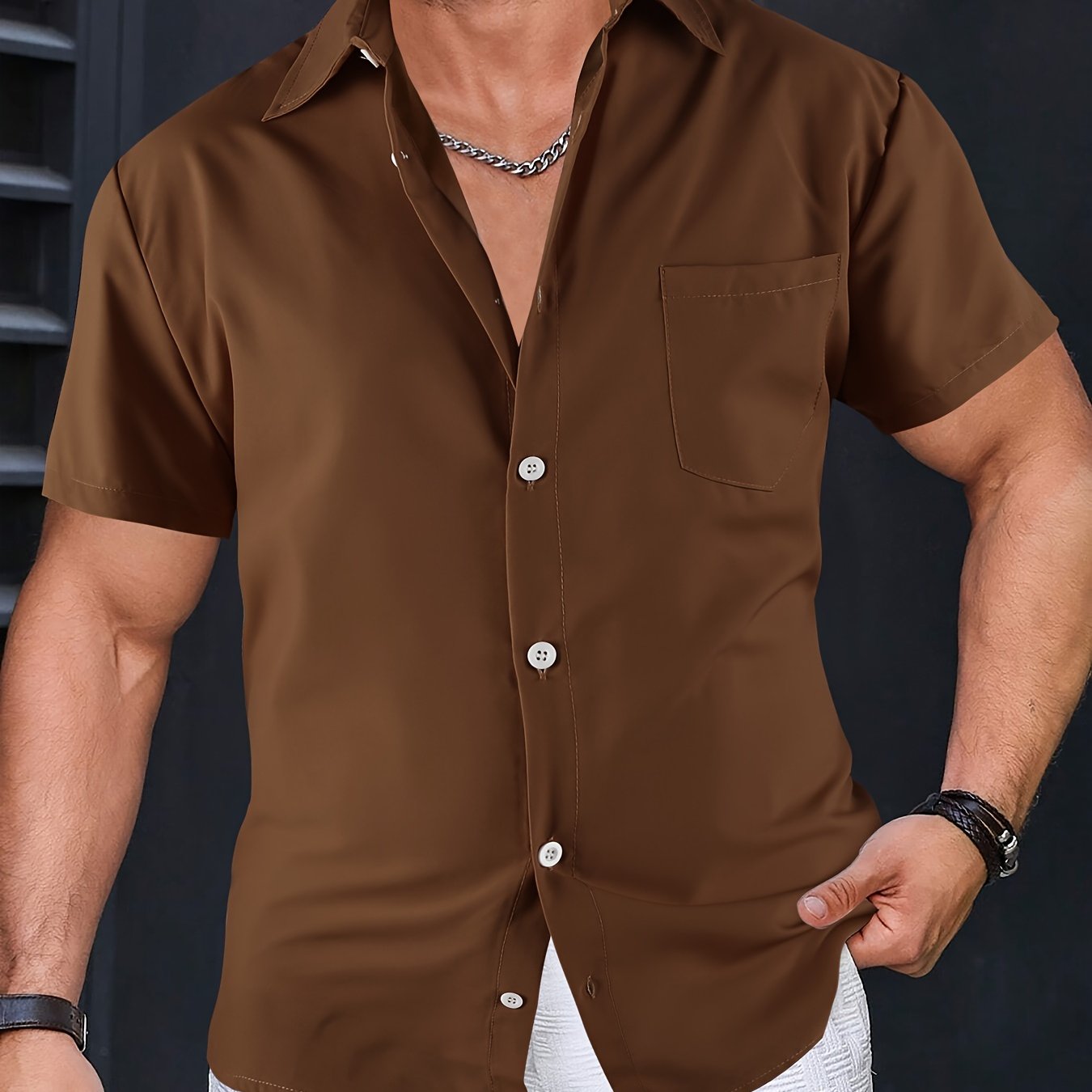 TEMU 남성 솔리드 컬러 셔츠, 반팔 캐주얼 버튼업 칼라, 여름용, 데일리룩에 편리한 셔츠