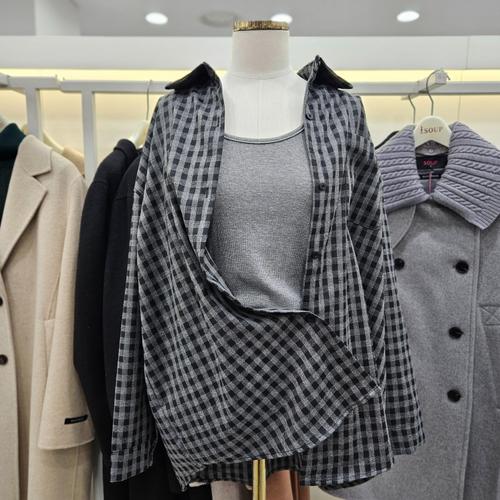 [숲]나시셋업 체크 카라셔츠 SBATX301A_IC