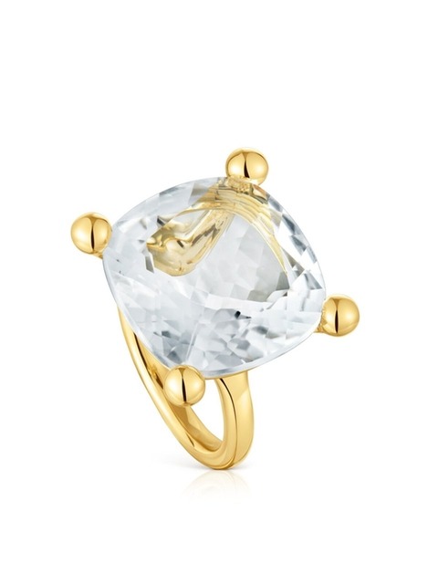 [토스] [TOUS] 18K 골드 버메일 실버 화이트 쿼츠 라지 반지 12호 1004236412