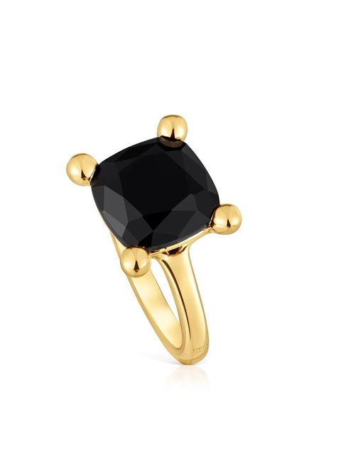 [토스] [TOUS] 18K 골드 버메일 실버 블랙 오닉스 미디엄 반지 14호 1004235814
