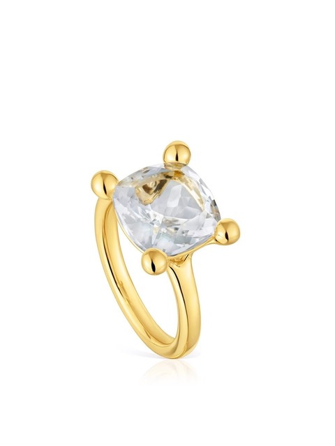 [토스] [TOUS] 18K 골드 버메일 실버 화이트 쿼츠 미디엄 반지 14호 1004236714