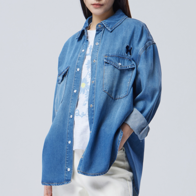 [베네통]패치 자수 데님 블라우스_BABL52461