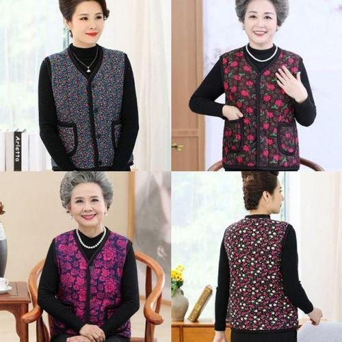 할머니 할매 겨울 누빔 꽃무늬 털 조끼 보온 여성