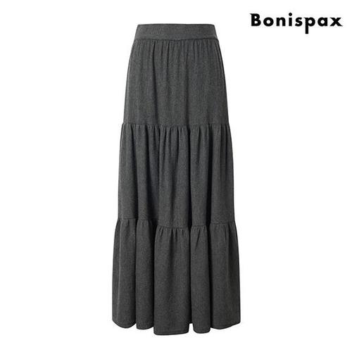[보니스팍스][시즌오프] 플레어 밴딩 비스코스 셔링 니트 롱 스커트 (XO4WH005L0)