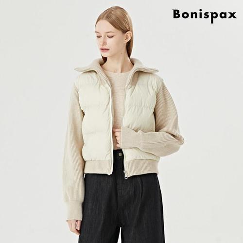 [보니스팍스][시즌오프] 데일리 집업 니트 배색 하이넥 패딩 점퍼 (XO4JJ009L0)