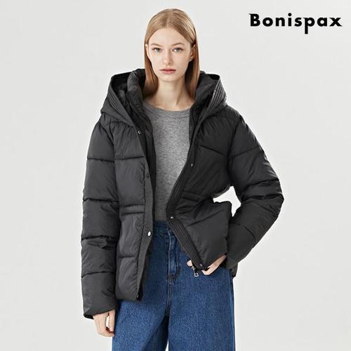 [보니스팍스][시즌오프] 심플 후드 허리 밴딩 포켓 긴팔 패딩 점퍼 (XO4JJ006L0)