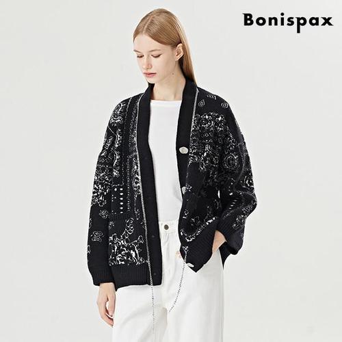 [보니스팍스][시즌오프] 실버 체인 페이즐리 비스코스 니트 가디건 (XO4CK009L0)