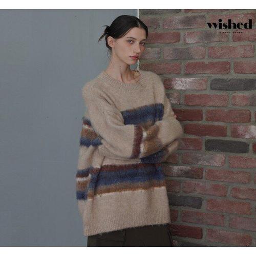 [위시드][시즌오프] 라운드넥 루즈핏 칼라 패턴 긴팔 니트 (WIBDNT004)