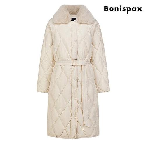 [보니스팍스][시즌오프] 퀼팅 퍼 카라 스트랩 롱 패딩 점퍼 (XN4JJ008L0)