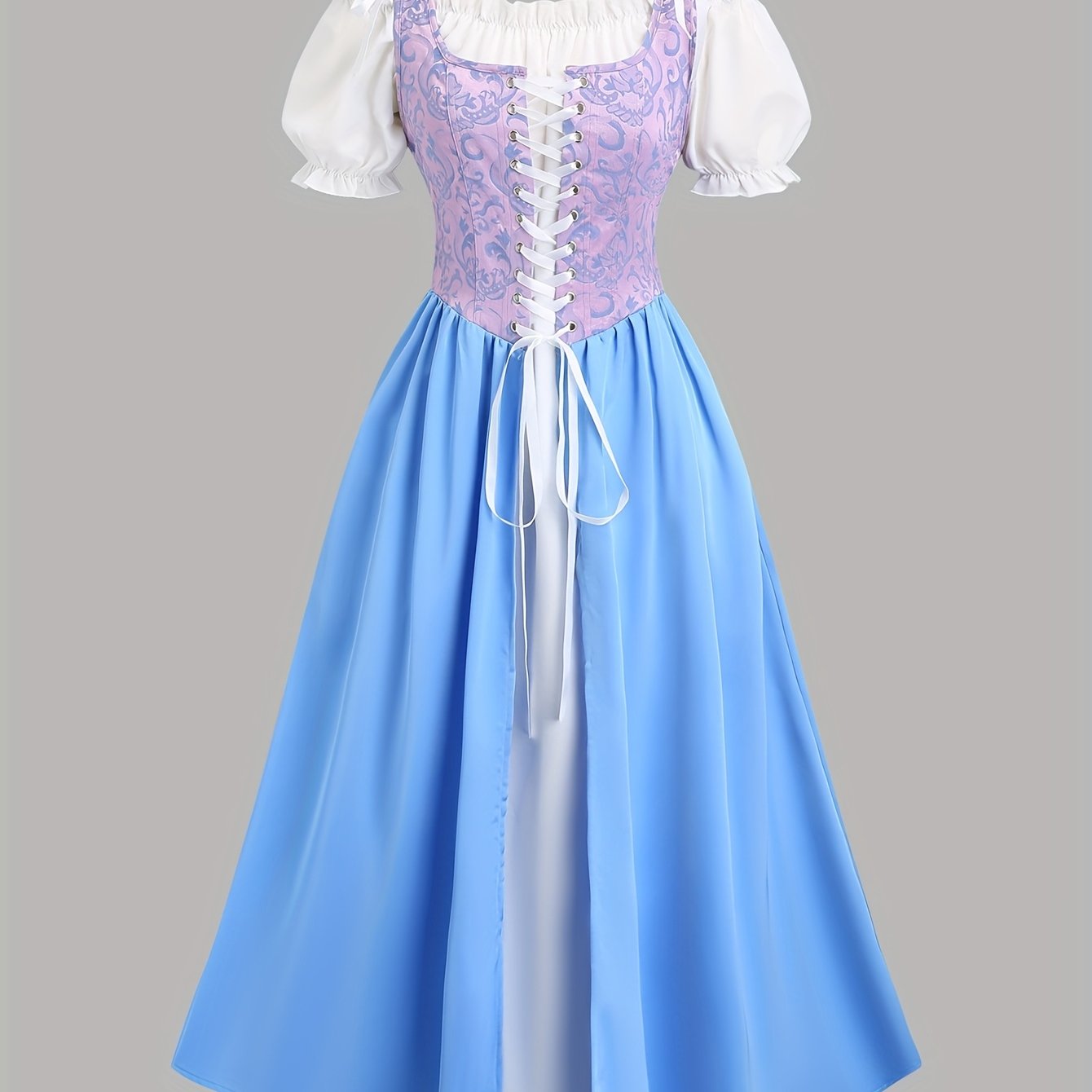 TEMU 유럽과 미국 패션 랜턴 슬리브 드레스, 뼈 지원 포켓 아우터웨어 2pcs 세트, 중간 길이부터 긴 길이까지의 드레스
