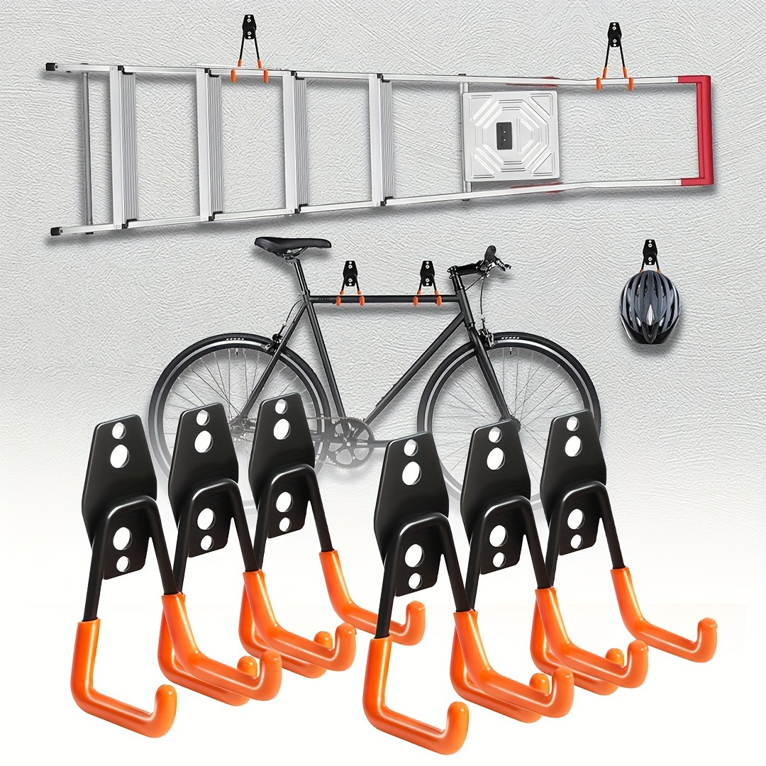 TEMU 6팩 헤비듀티 메탈 후크 - 오렌지색 플라스틱 팁이 있는 산업용 벽걸이 차고 정리대, 사다리, 자전거 및 스포츠 장비를 위한 공간 절약형 저장소, 견고한 후크 디자인 | 내구성 있는 구조, 차고 훅