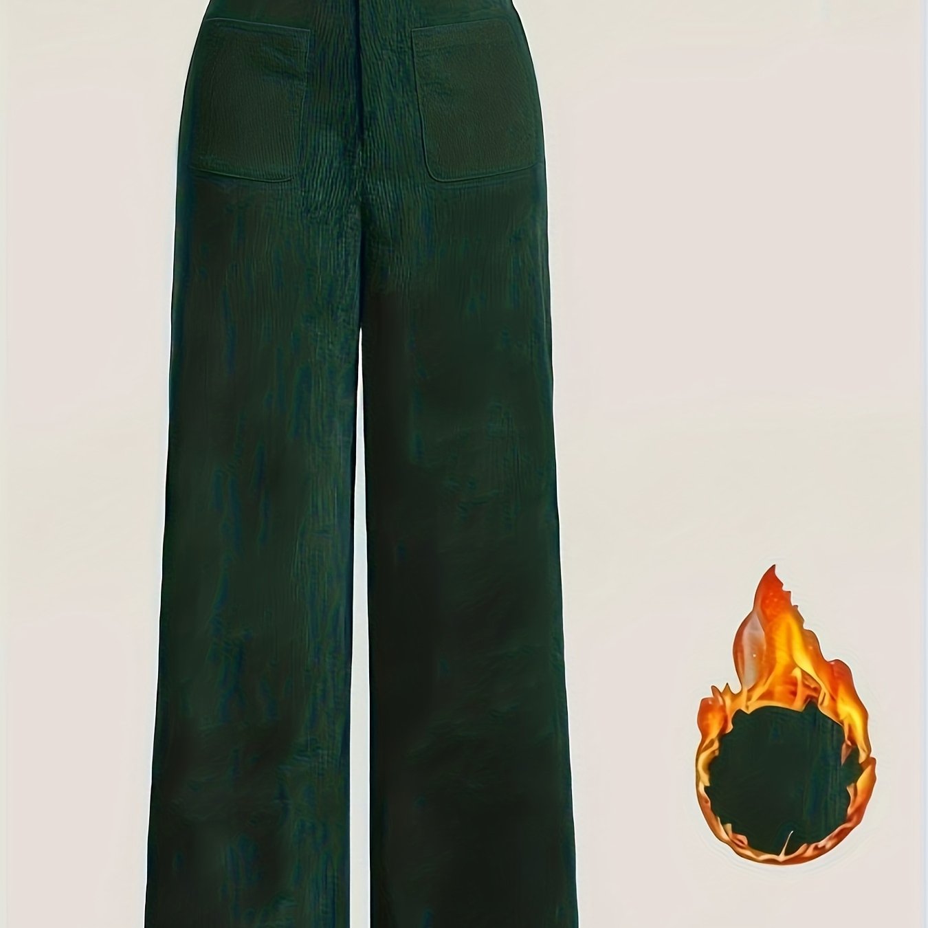 TEMU 여성용 우아한 다크 그린 와이드 레그 팬츠 - 하이웨이스트 레그 팬츠, 포켓 포함, 주름 방지 & 세탁기 사용 가능, 포멀 이벤트 및 캐주얼 룩에 적합한 딥 그린 (벨트 루프 없음)