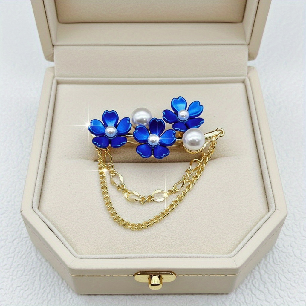 TEMU 여성을 위한 우아한 진주 브로치, 1개 18K 금도금 아연 합금 브로치 (모조 진주 꽃 및 체인 포함), 6가지 색상 옵션, , 파티, 휴일에 적합, 뒷면 버클, 내구성, 여성용 패셔너블 액세서리