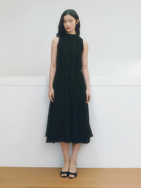 [가니송] 홀터 리본 브리즈 원피스_블랙