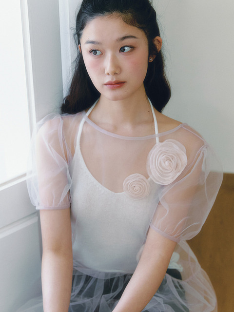 [가니송] 로즈 오버레이 원피스_더스티 로즈