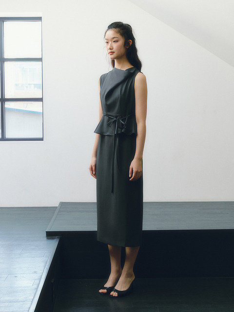 [가니송] 브라이덜 스틸 라인 원피스_차콜
