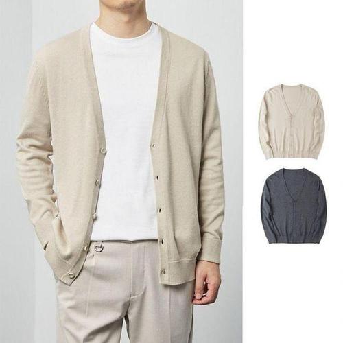 [셀러허브_여성트랜드패션]기본형 남성 가디건 브이넥 베이직 넘성단 V넥 색코트 코트 빅사이즈 솔리드 ..