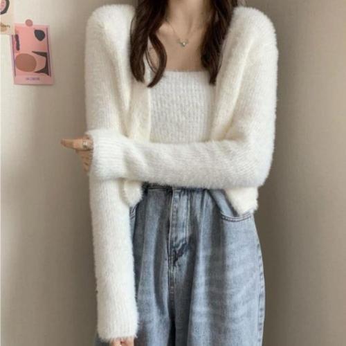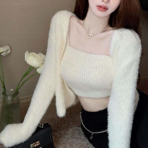 [셀럽하우스]여성 NOBF3129 앙고라 크롭 나시 가디건 세트