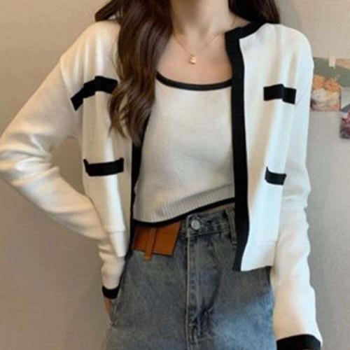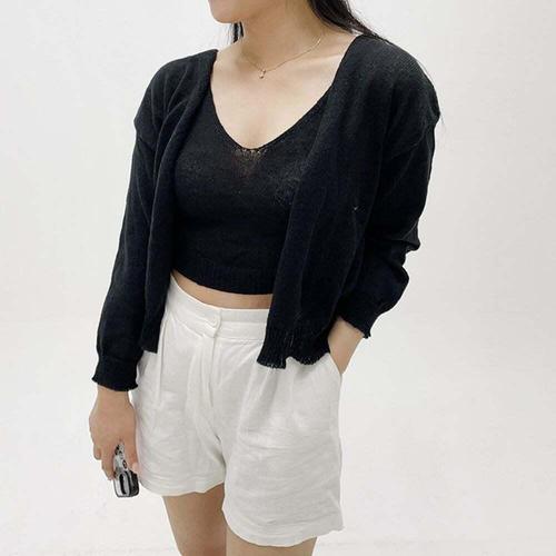 [셀럽하우스]긴팔 ZKRW1700 가디건 니트 데일리 나시 여름 데일리 크롭 세트
