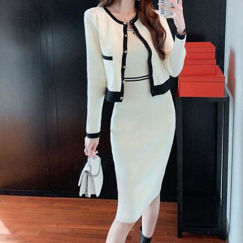 [셀럽하우스]가디건 YQRV5885 U넥 원피스 니트 세트 오피스룩 하객룩