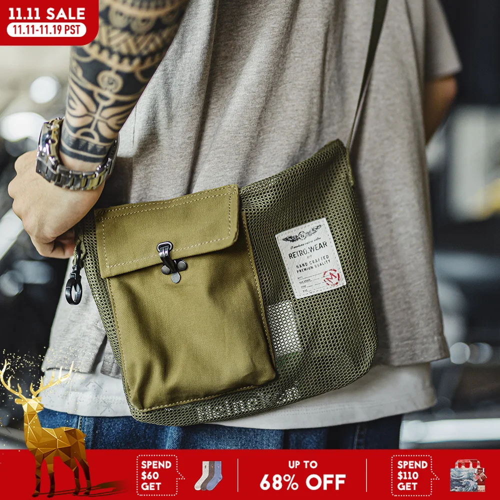 Maden Outdoor Green Crossbody 가방 남성용 여름 경량 메쉬 메신저 백(조절 가능한 스트랩 포함) 하이킹 및 일일용 전화 파우치